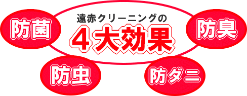 ふとんクリニーニングをすることで、遠赤外線処理により4つの大きな効果が得られます。